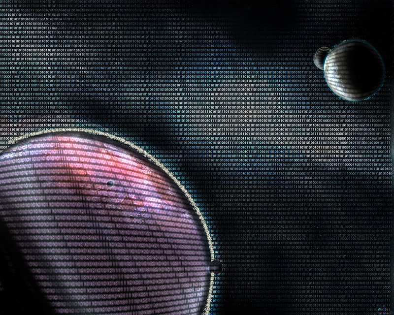 Este ejercicio consiste en realizar una ilustración en Photoshop usando solo ceros y unos, transmitiendo una sensación de futuro y mundo digital.