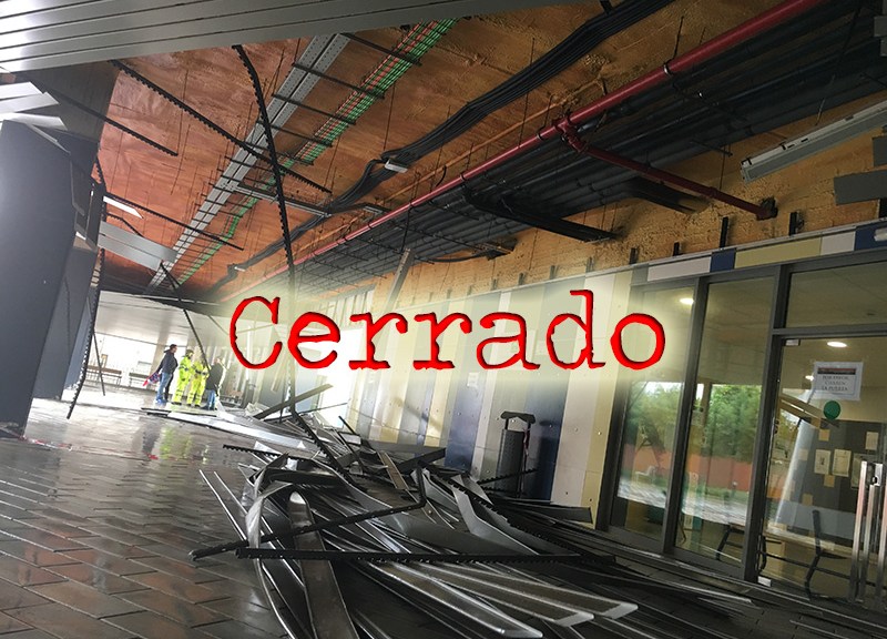 Hacía varias semanas que la entrada al Conservatorio estaba acordonada porque el techo estaba en muy mal estado, y ayer, 10 de abril de 2018, se derrumbó. Afortunadamente, sin daños personales.