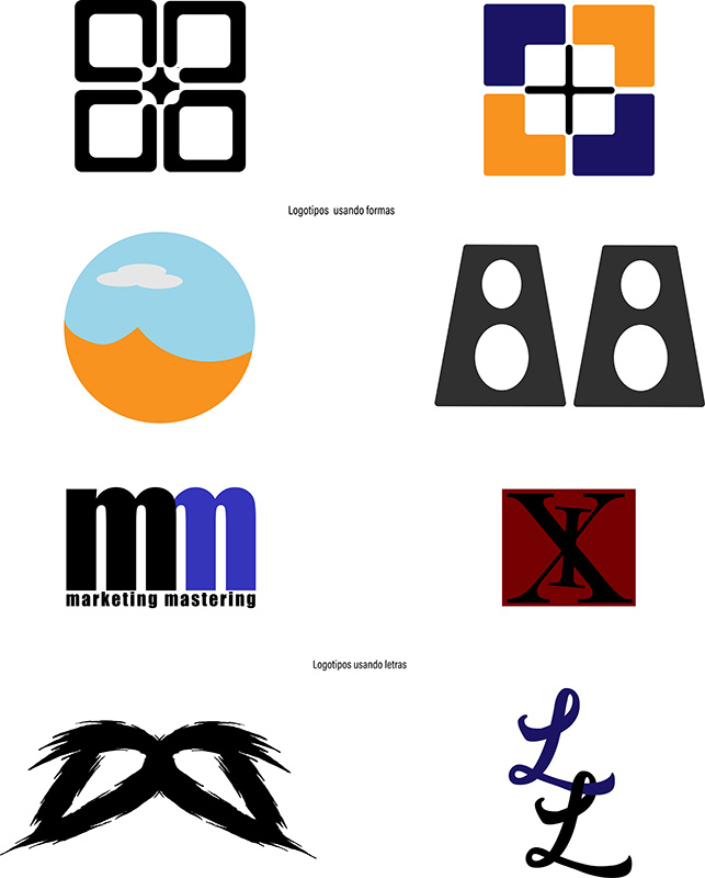 En este ejercicio, se deben crear 8 pictogramas, símbolos o marcas vectoriales, usando formas geométricas, texto, y el Buscatrazos.