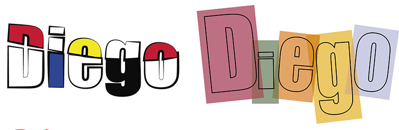Este curso, y dada la importancia del ejercicio en diseño gráfico, la hemos hecho doble: por un lado debían diseñar formas clásicas con geometría, y como novedad este año, debían hacer los mismos procesos con texto vectorial.