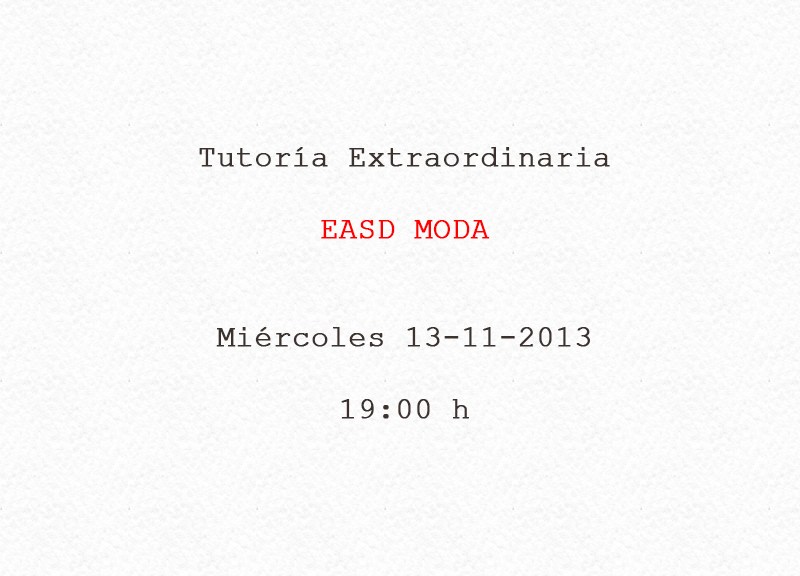Mañana Miércoles, 12 de Febrero de 2014, los alumnos de 1º de los Estudios Superiores de Moda de la Escuela de Arte tenéis tutoría conmigo para comentar los resultados de la primera evaluación.